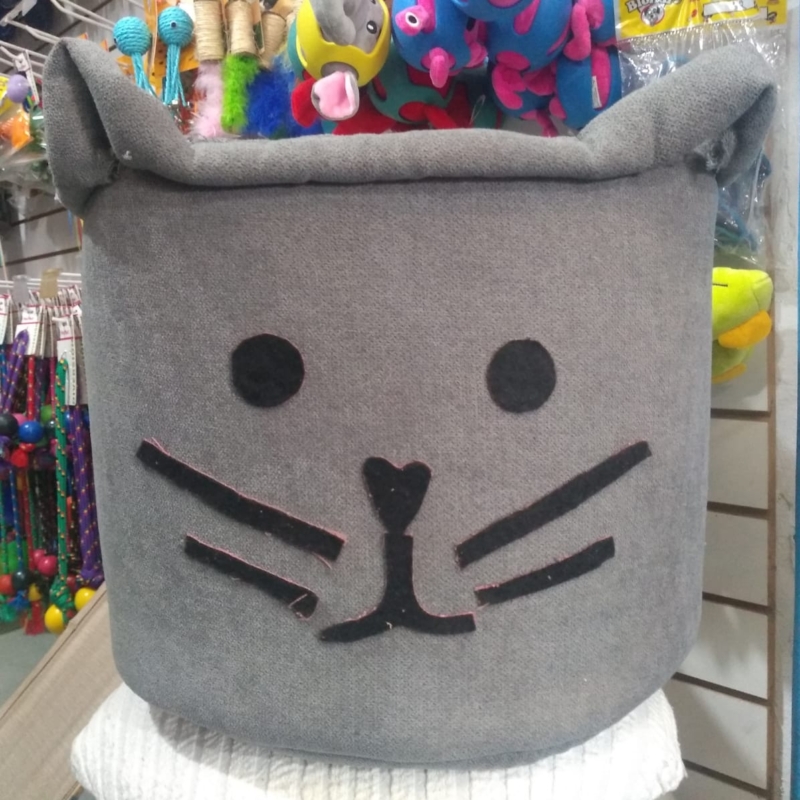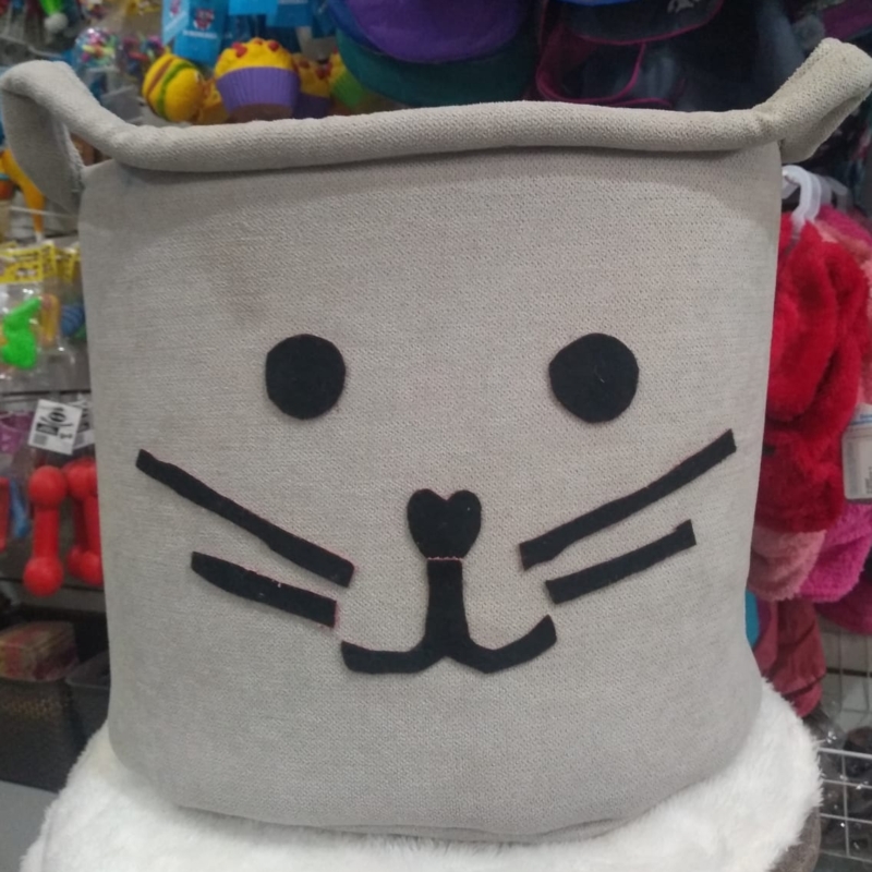 CANASTO ORGANIZADOR PARA GUARDAR JUGUETES Y CUALQUIER ACCESORIO DE TU MASCOTA EN PANA ANTIMANCHAS.