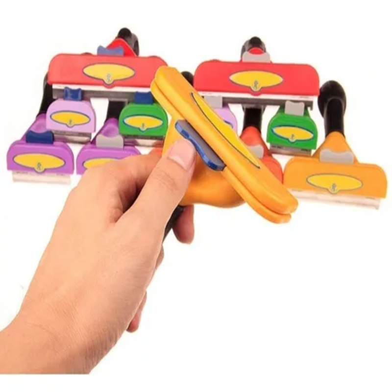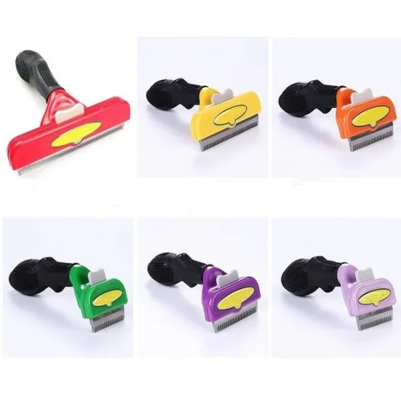 El borde de acero inoxidable se desliza por debajo de la capa superficial de pelo de la mascota para eliminar con delicadeza la capa inferior y el pelo suelto y muerto