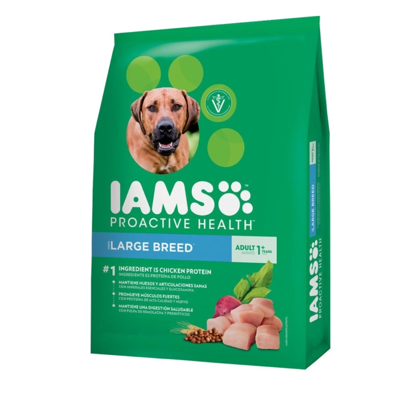 IAMS PROACTIVE HEALTH – ADULT LARGE BREED es alimento seco 100% completo y balanceado, desarrollado especialmente para perros adultos de razas grandes, mayores a 24 meses de edad.