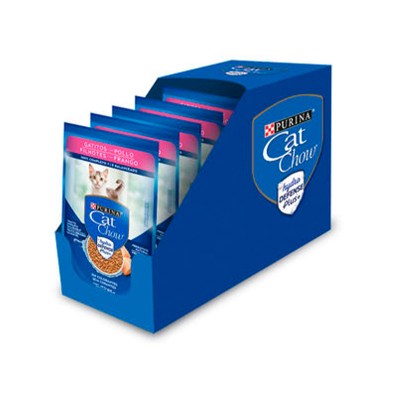 PURINA® CAT CHOW® Defense Hydro® Gatitos sabor pollo es un alimento húmedo completo y balanceado para gatos en crecimiento de 1 a 12 meses de edad de todas las razas.